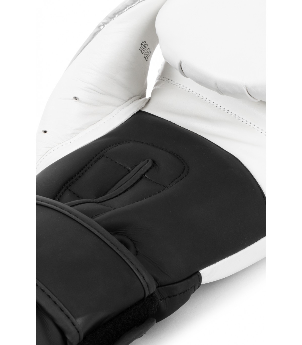 Κομψά γάντια πυγμαχίας κατασκευασμένα από ένα συναρπαστικό μείγμα ανθεκτικού δέρματος αγελάδας και συνθετικού δέρματος για προπόνηση πυγμαχίας. Η παχιά επένδυση από αφρό και το εξαιρετικά φαρδύ κλείσιμο Velcro εξασφαλίζουν βέλτιστη άνεση, προστασία των χεριών και επαρκή σταθερότητα κατά τη διάρκεια της προπόνησης.