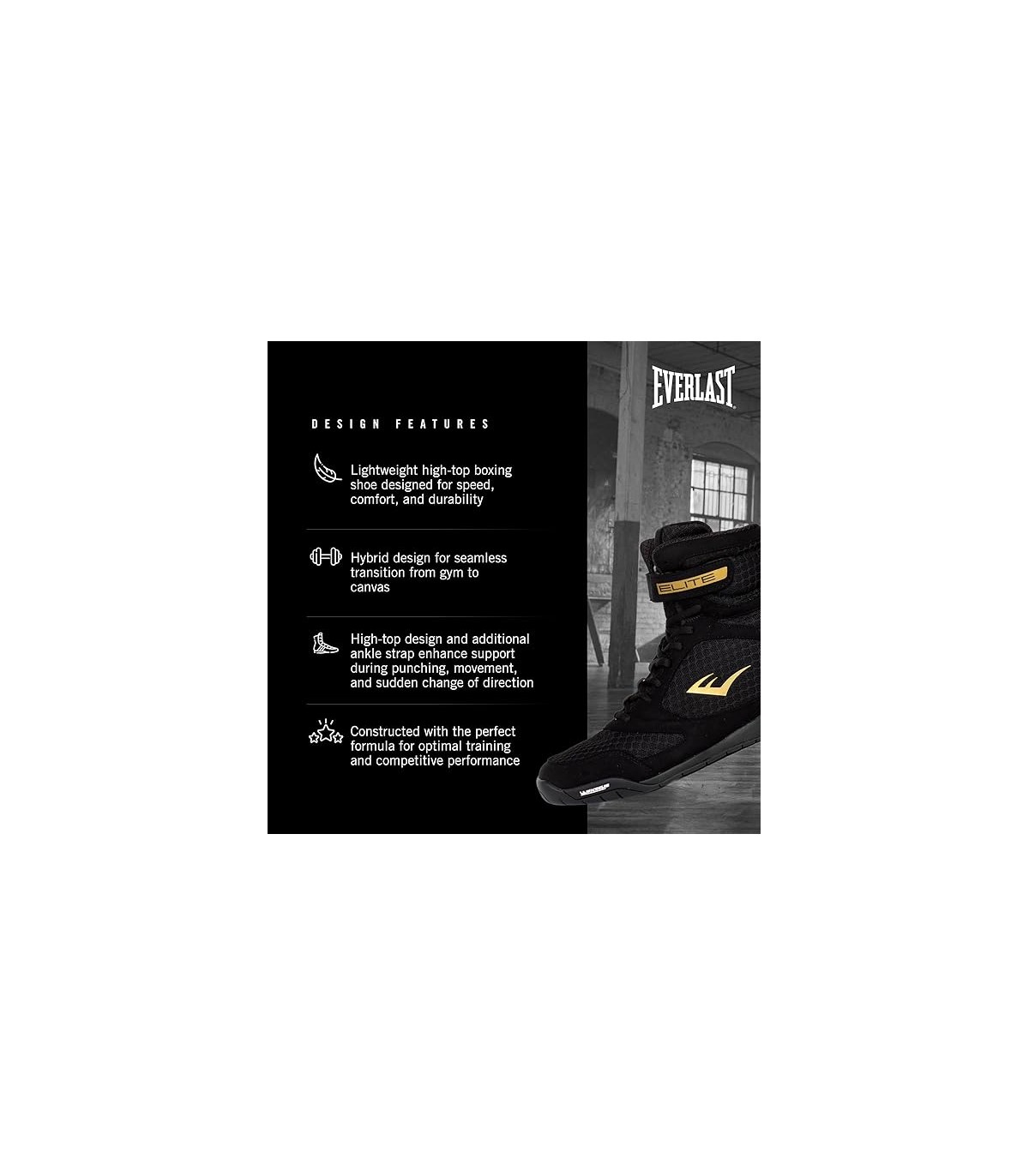 Τα παπούτσια πυγμαχίας Everlast Elite 2 είναι ελαφριά και σχεδιασμένα με την κατανόηση ότι η κίνηση των ποδιών είναι απαραίτητη στην πυγμαχία.